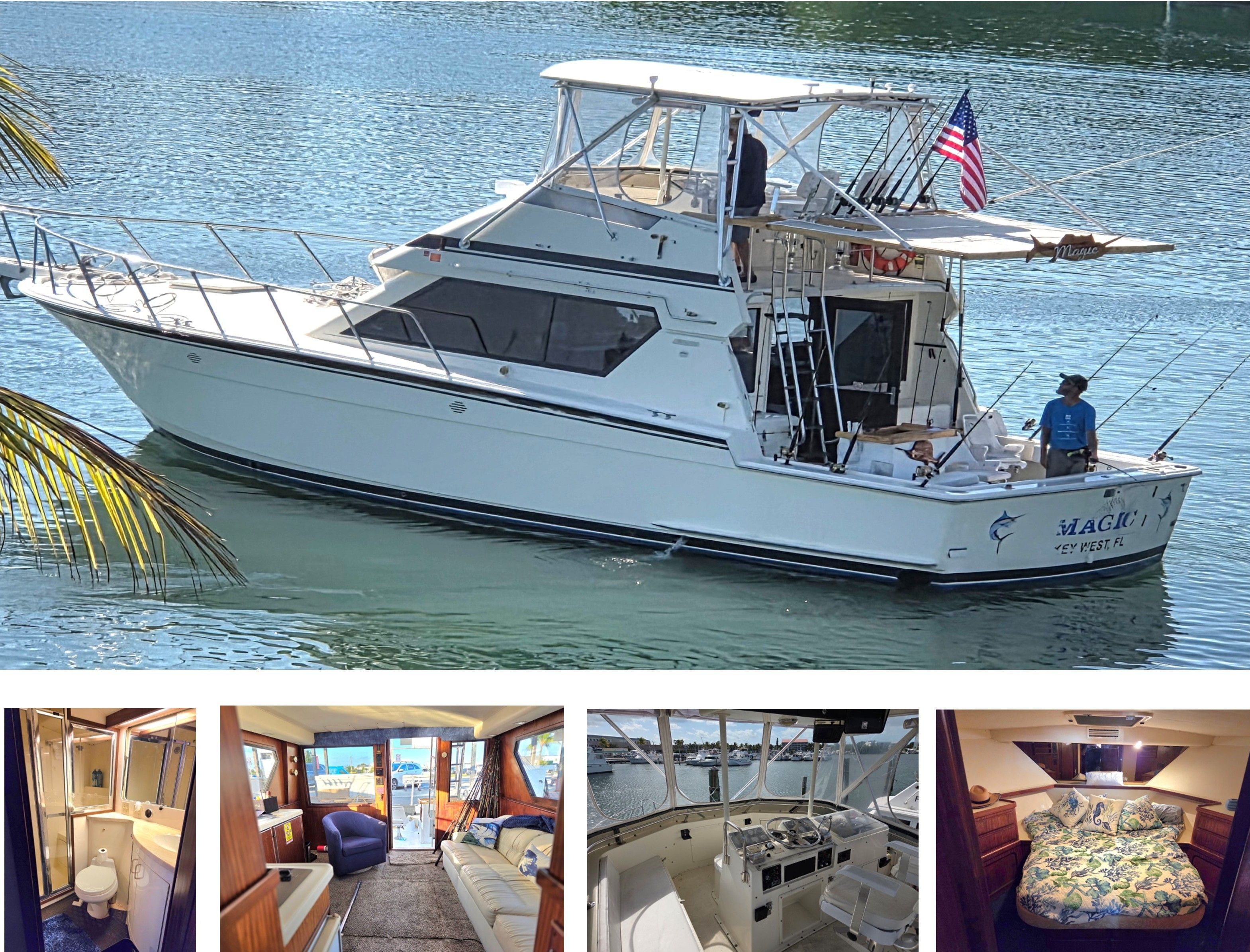 Trips take place aboard the Magic, a 42’ Hatteras sportfishing yacht recognized as one of the finest vessels in the Key West charter fleet. The boat features a modern, air-conditioned salon with plush seating, a spacious stand-up bathroom, and shaded deck areas for comfort throughout the day. Fully equipped with fishing gear, bait, ice, and fishing licenses, the yacht allows guests to focus on enjoying the waters of Key West. With smooth, stable rides and short runs to prime fishing spots, the Magic offers a seamless combination of comfort, accessibility, and functionality for every fishing adventure.